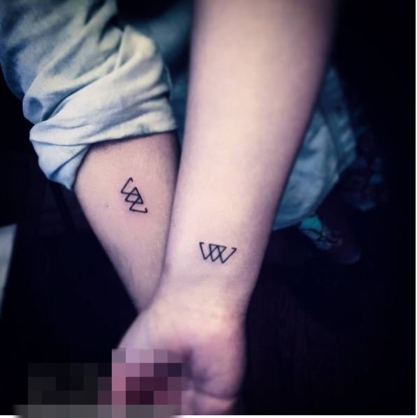 一组黑白灰风格简单个性线条小清新系列姐妹纹身图案大全