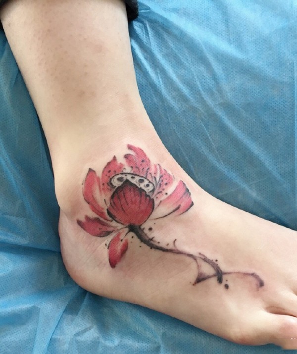 脚背好看的莲花彩绘纹身图案