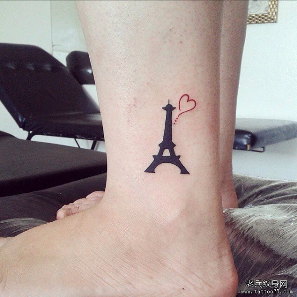 脚踝小清新埃菲尔铁塔图腾纹身图案