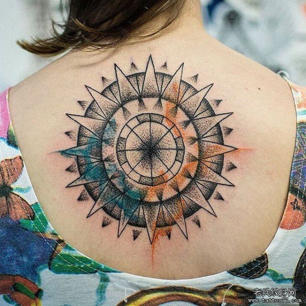 背部点刺几何纹身泼墨纹身图案