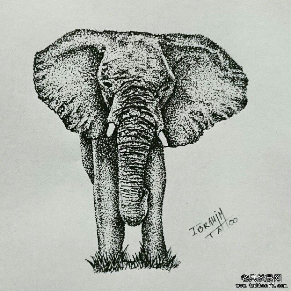 欧美大象点刺纹身图案手稿