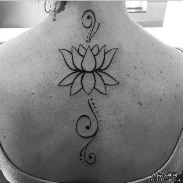 背部小清新莲花线条纹身图案
