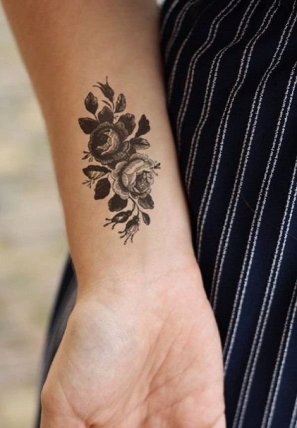 欧美玫瑰纹身 男生手臂上花朵纹身图片