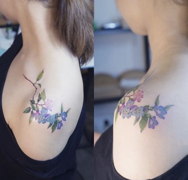 后肩唯美花藤英文图案图片_植物纹身图案大全_纹身图吧