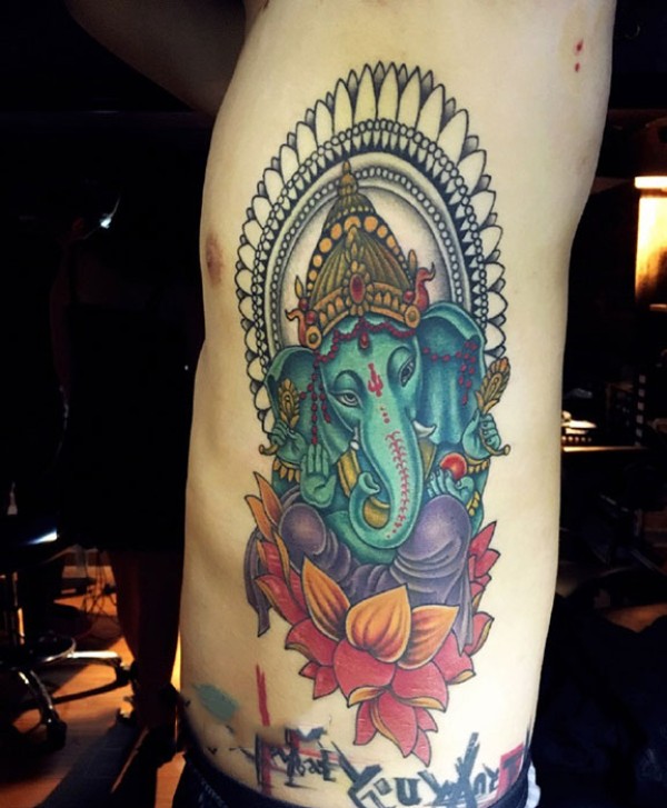 腹部彩绘象神纹身图案
