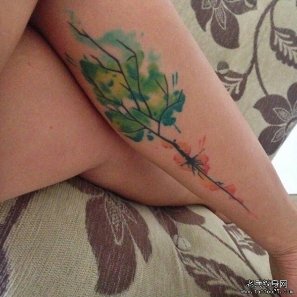 清新花朵腿部纹身图案图片_植物纹身图案大全_纹身图吧
