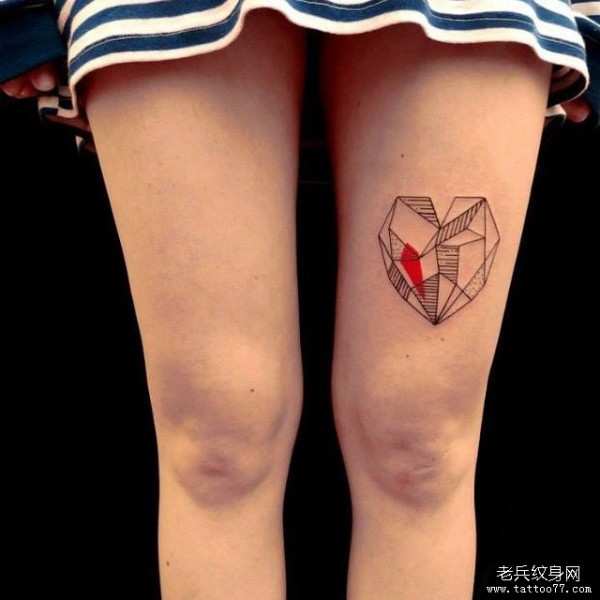 大腿性感几何线条心形纹身图案