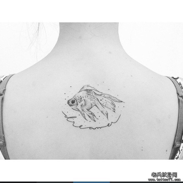 背部金鱼字母小清新纹身图案
