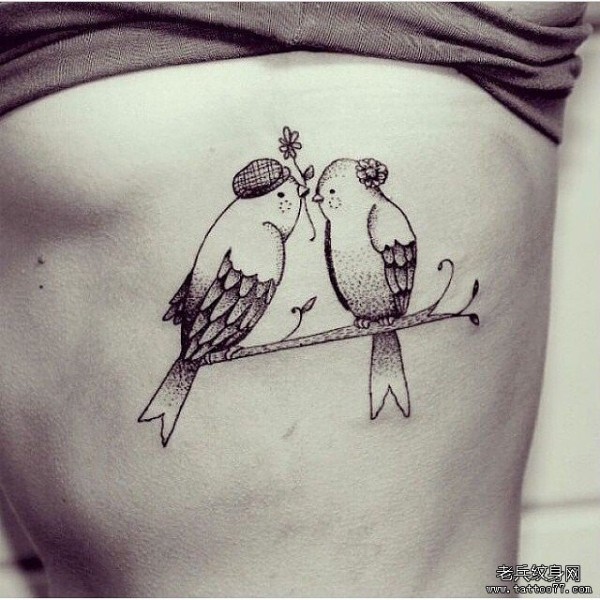 侧腰小清新欧美鸟纹身图案