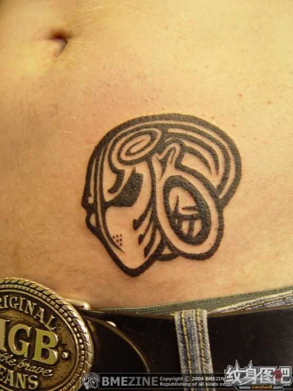 腰部黑色图腾头像纹身