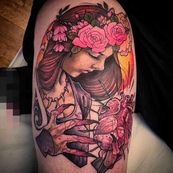 逼真的超现实主义花纹身图案来自纹身师莫拉莱斯