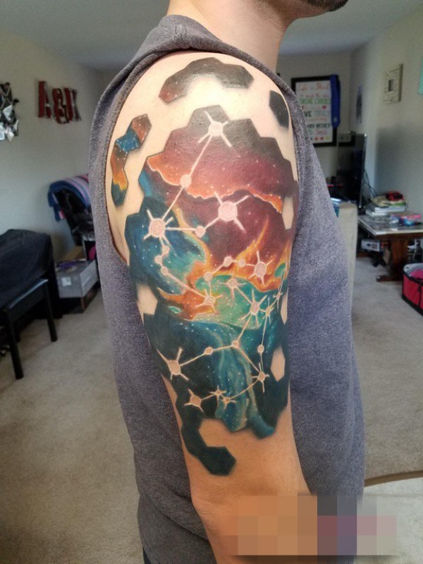 手臂上彩绘技巧原宿星空简单个性线条纹身图片