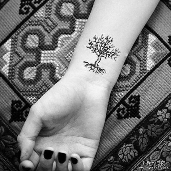手部个性盛开莲花纹身图片_植物纹身图案大全_纹身图吧