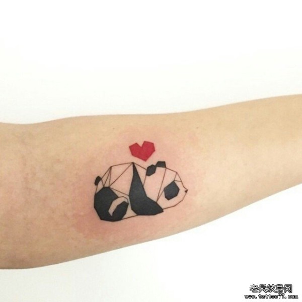 小臂熊猫心形小清新几何纹身图案