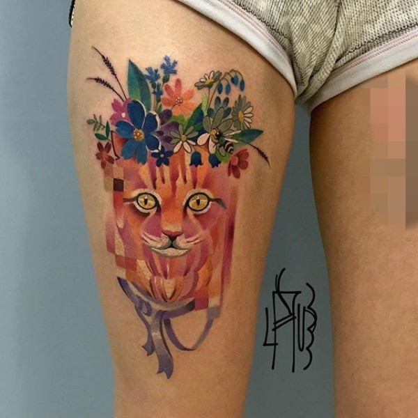 逼真的超现实主义花纹身图案来自纹身师莫拉莱斯