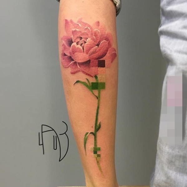 一款有个性的几何元素纹身像素故障纹身图案