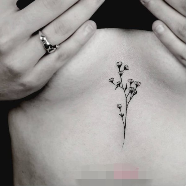 一组女生黑白纹身点刺技巧简约线条纹身植物纹身素材花朵纹身图案