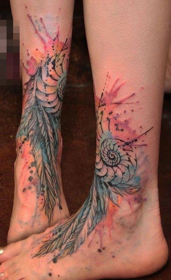 脚踝羽毛文身作品