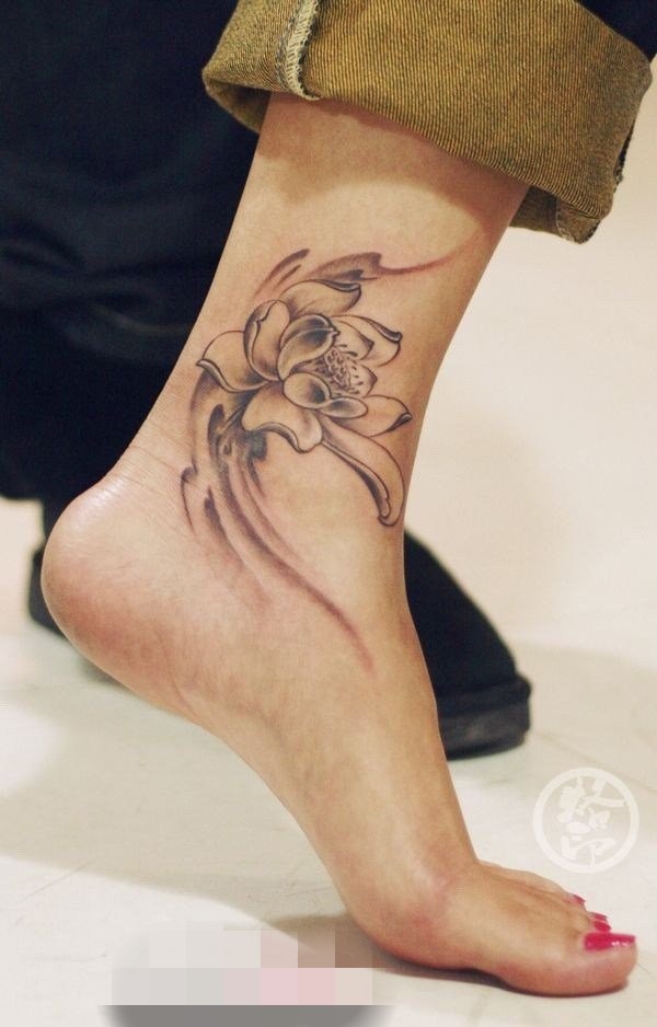分享一款脚踝莲花纹身图案_脚部纹身图案大全_纹身图吧