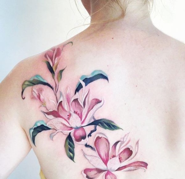 后肩唯美花藤英文图案图片_植物纹身图案大全_纹身图吧