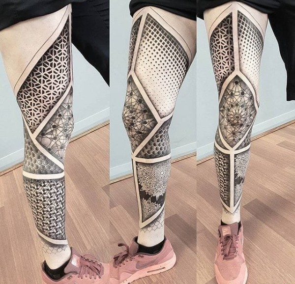 13款黑白灰风格点刺纹身几何元素纹身简约线条纹身图案
