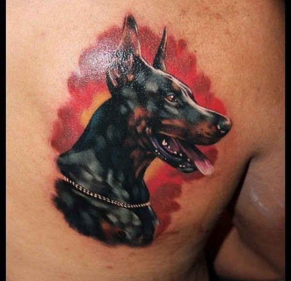 一组生动且活泼的杜宾犬宠物狗纹身动物纹身图案大全