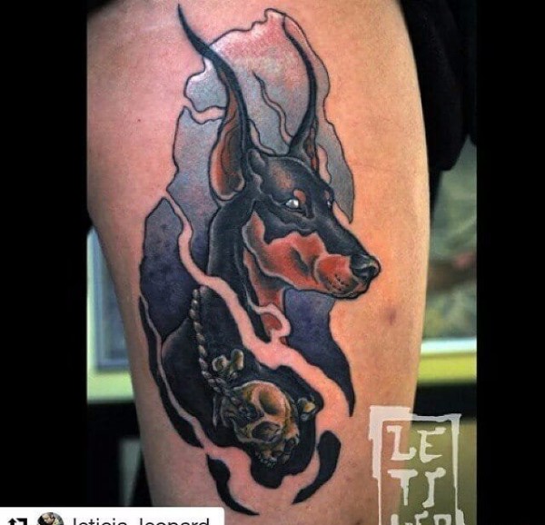 一组生动且活泼的杜宾犬宠物狗纹身动物纹身图案大全