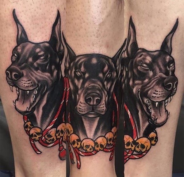 一组生动且活泼的杜宾犬宠物狗纹身动物纹身图案大全