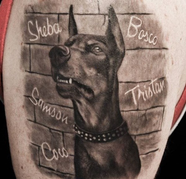 一组生动且活泼的杜宾犬宠物狗纹身动物纹身图案大全