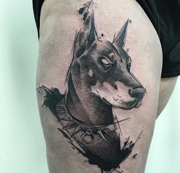 一组生动且活泼的杜宾犬宠物狗纹身动物纹身图案大全