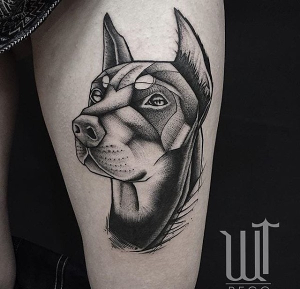 一组生动且活泼的杜宾犬宠物狗纹身动物纹身图案大全