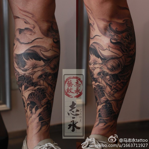 腿部鳌鱼纹身图案_腿部纹身图案大全_纹身图吧