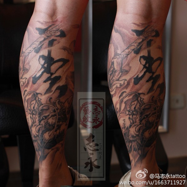 花腿纹身--一组大黑腿纹身图案作品欣赏
