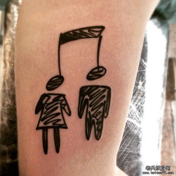 大臂音符人物个性黑色纹身图案