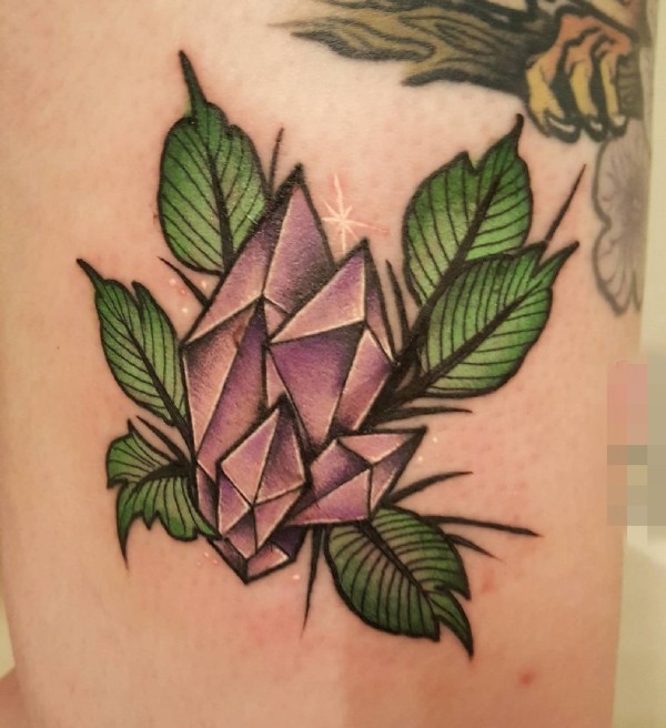 手臂上彩绘叶子素材简约线条纹身水晶图案纹身图片