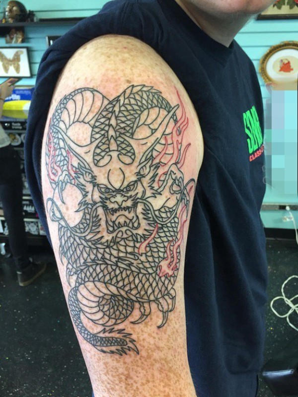 日式手彫刺青作品—半甲龙很感谢客户认可手彫刺青,手彫是日本纹身的手工雕刻技术,时间可以追溯到日本17世纪的江户时代。19世纪,手彫技术被日本黑帮挪用,被用作入会仪式,象征着从此就是江湖中人。在日式传统