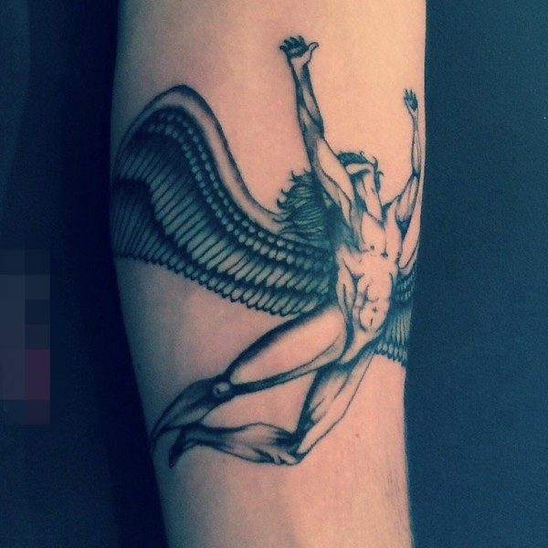 手臂上纹身黑白灰风格纹身点刺技巧天使翅膀纹身素材人物肖像纹身图片