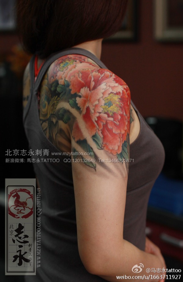 后肩唯美花藤英文图案图片_植物纹身图案大全_纹身图吧