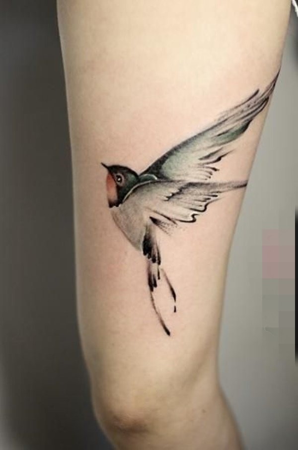 一组活泼可爱的简单线条纹身黑白灰风格点刺技巧小鸟纹身图案
