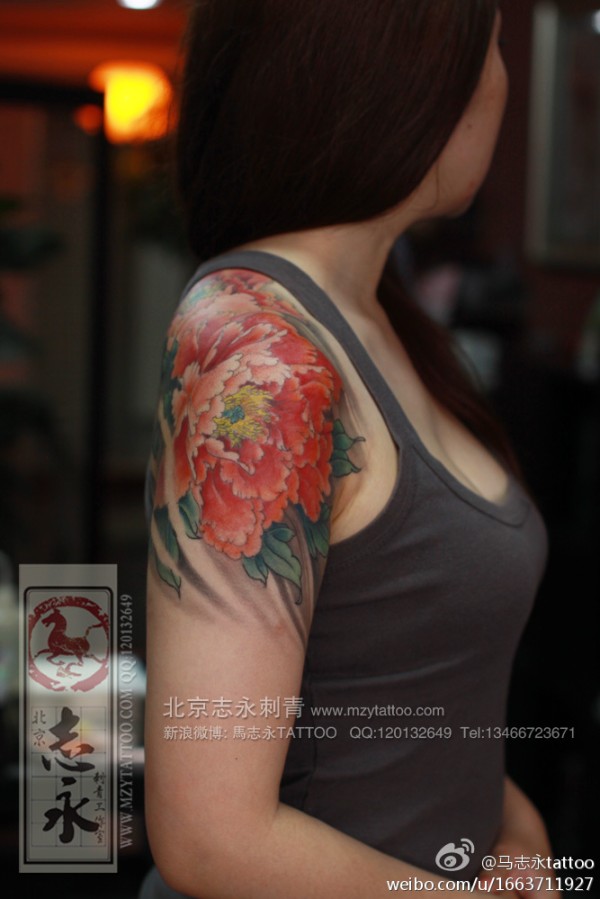 后肩唯美花藤英文图案图片_植物纹身图案大全_纹身图吧