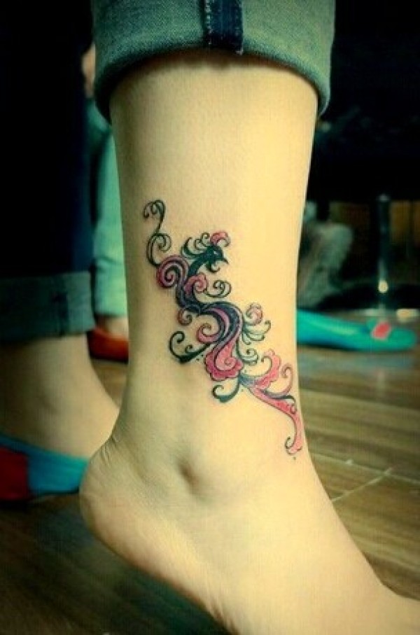脚踝漂亮的凤凰图腾刺青图案