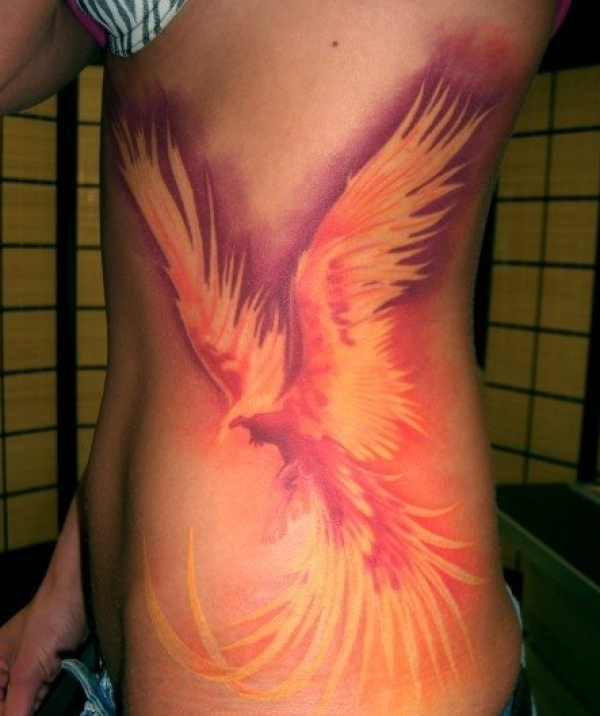 个性美女侧腰神奇的浴火凤凰纹身图案
