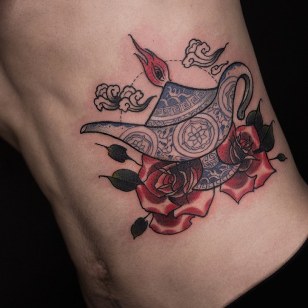 腰部实现愿望的阿拉丁神灯纹身图案
