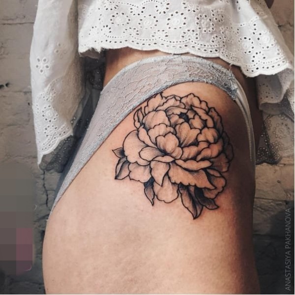 女生后腰纹身黑白灰风格抽象线条纹身图案