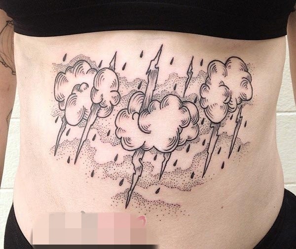12款简洁个性的黑白纹身点刺技巧云朵纹身图案大全