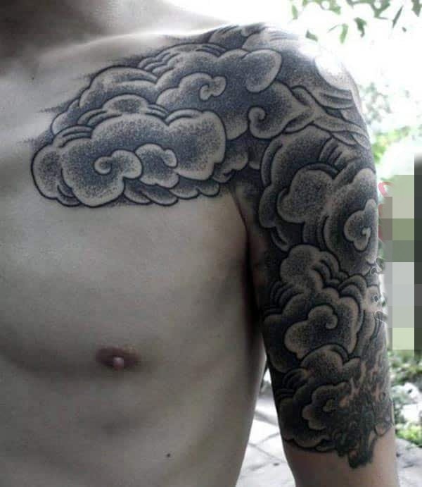 12款简洁个性的黑白纹身点刺技巧云朵纹身图案大全