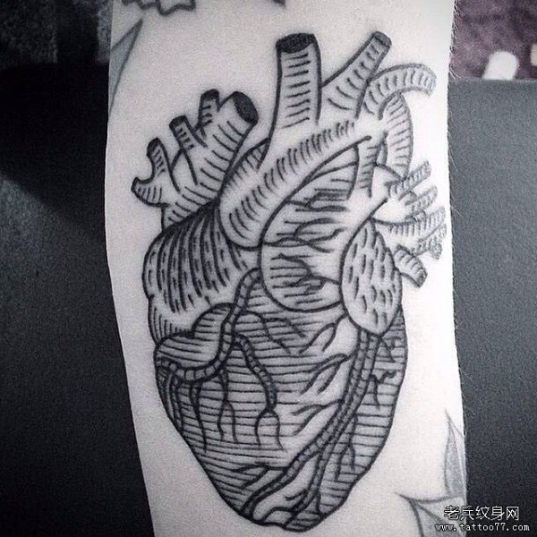 小臂心脏线条黑色纹身图案