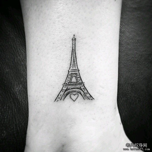 脚踝小清新埃菲尔铁塔心形纹身图案