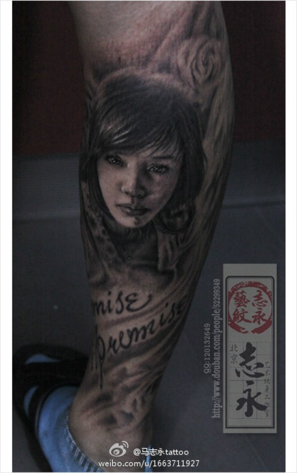 清纯女孩腿上可爱肖像纹身图片_肖像纹身图案大全_纹身图吧