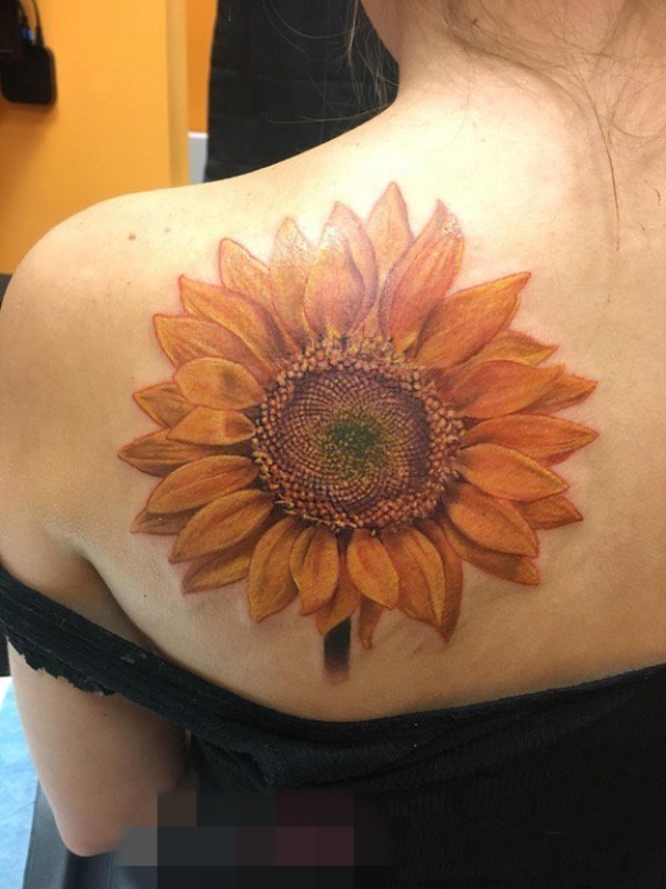 女生肩部彩绘技巧简约线条小清新植物向日葵纹身图片